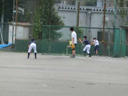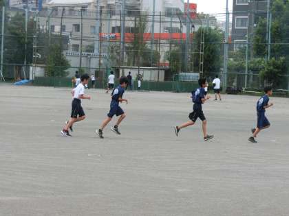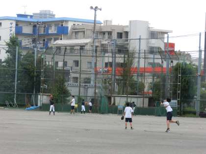 陸上部と野球部が練習中。台風がそれてよかったです。