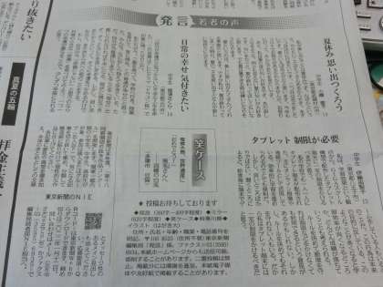 新聞には、投稿コーナーがあります。中学生でも投稿可能です。挑戦してみてはどうですか。