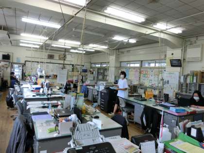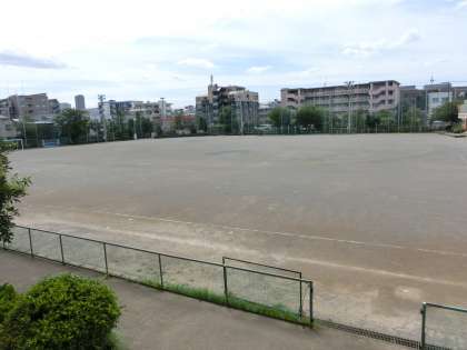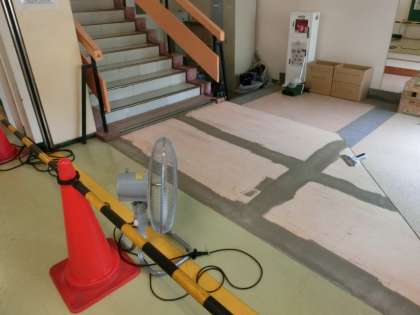 職員室も今日は人が少ないです。校庭も。修繕工事も進んでいます。