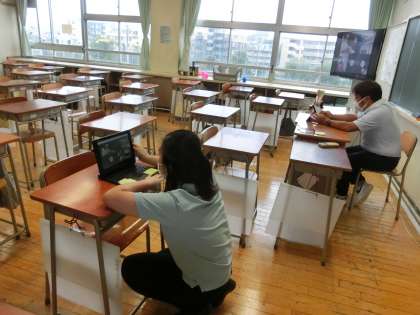 オンライン授業に向けて4 9月1日(水) 公開日 2021/09/01 更新日 2021/09/01 校長室より 練習中。3日からいよいよ分散登校で、学校と自宅を結んでの授業がはじまります。先生たちにとっても、みなさんにとってもはじめての試みです。一緒に良い授業をつくっていきましょう。協力お願いします。 保護者の皆様には、本日お手紙を出しましたので、各ご家庭のWi−Fi環境や登校日のことで特段の事情がある場合は、遠慮せずにご相談ください。よろしくお願いいたします。 いいね(0)