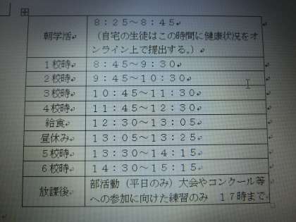 朝学活 8:25〜8:45 ※自宅の生徒は、この時間に健康状況をオンラインで提出してください。