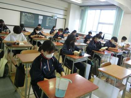 分散登校1日目4 9月3日(金) 公開日 2021/09/03 更新日 2021/09/03 校長室より いよいよ、学校と家庭とをオンラインで結ぶ授業のはじまりです。 1時間目は、1年生は英語、2年生は理科(木村先生)、3年生は家庭科です。 いいね(0)