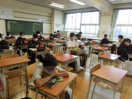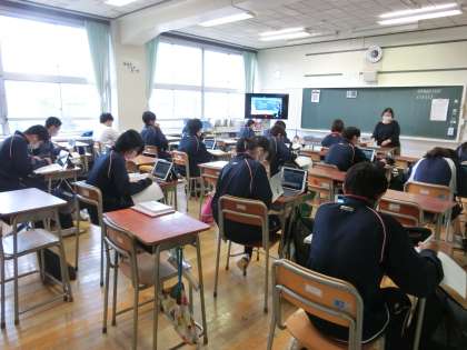 対面で授業を受けている生徒以外は、タブレットで授業に参加しています。