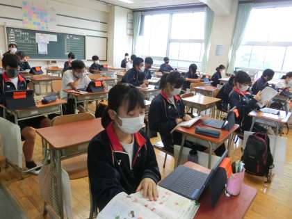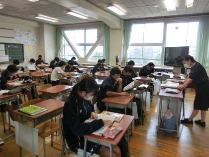 2時間目は、1年生理科、2年生家庭科です。