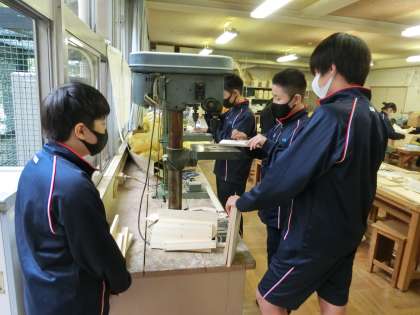 2年生の技術の授業。いつもより人数が少ないので、やりやすそうです。