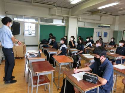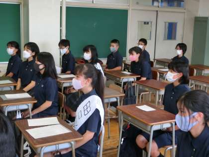 生徒会本部役員選挙に向けて3 9月7日(火) 公開日 2021/09/08 更新日 2021/09/08 校長室より 昨日の2年生の動画撮影に引き続き、1年生を行いました。はじめに委員長のあいさつです。 いいね(0)