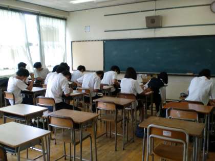 今日から3年生対象の区主催土曜講習会が始まりました。本校のほかに世田谷中・用賀中・八幡中・東深沢中・松沢中・船橋中・希望丘中(船橋中と希望丘中は一緒に一つの会場で実施)で行うこととなっています。1時間目が数学、2時間目が英語でいずれも90分単位で行っています。講師は区が派遣会社と契約して本校に派遣された方です。