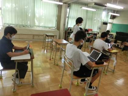 分散登校最終日1 9月10日(金) 公開日 2021/09/10 更新日 2021/09/10 校長室より 分散登校6日目。今日で最終日、偶数の人たちの登校です。I組も昨日に引き続き、Teamsで音楽の授業を配信しました。 いいね(0)