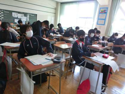 中間テストまで2週間1 9月15日(水) 公開日 2021/09/15 更新日 2021/09/15 校長室より 29日・30日の中間テストまであと2週間となりました。1時間目は、計画表づくりなど一人一人取り組んでいました。計画をつくって満足しないように、実行してください。 いいね(0)