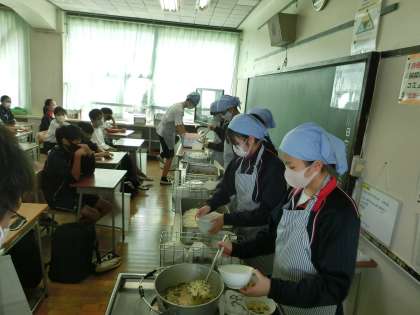 今日の学校生活1 9月16日(木) 公開日 2021/09/16 更新日 2021/09/16 校長室より 午後は、ズーム会議があり、給食の様子から紹介します。 まず給食当番が、身支度を整えて、配膳の準備をしてくれます。 いいね(0)