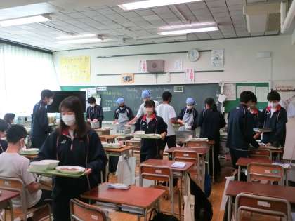 楽しみな給食ですが、最近「残菜」が多いと栄養士の先生が悲しんでいました。フードロスが多い日本で、さらにコロナ禍で、食べない人が増えているようです。特にお魚のメニューの日は多いそうです。中学校になったら完食指導はしませんが、栄養士さんがみんなの健康や成長のためにメニューを考えて、調理さんが心を込めて作ってくれています。食材もこだわっています。本当においしいです。ぜひ、残さずたくさん食べてください。よろしくお願いします。