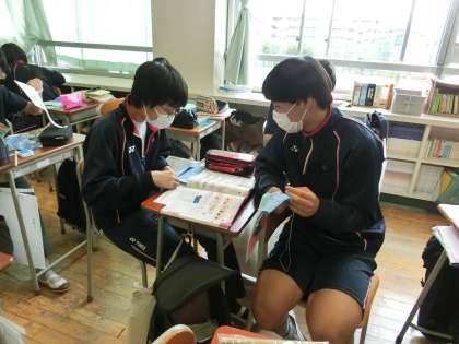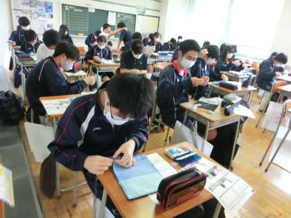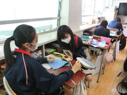 3年生家庭科。ウォールポケット作りがすすんでいます。