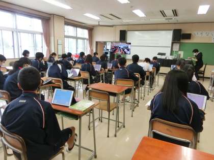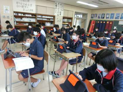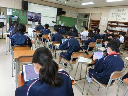 2年生音楽。自分たちの合唱を聞いて、ロイロノートを使って、意見交換です。