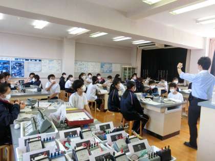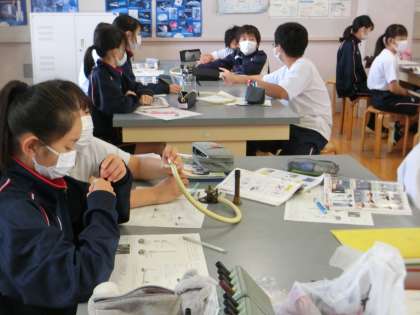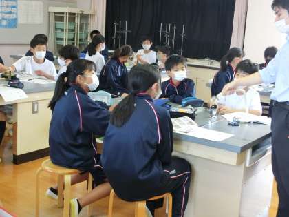 理科の実験。1年生です。