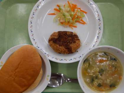コロッケは配膳室にワゴンを運ぶ時間ギリギリまで揚げているので、温かくサクっとしています。
