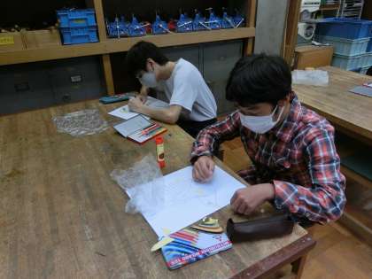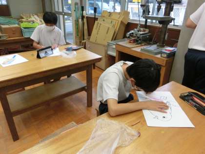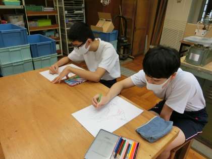 I組美術の授業。ちぎり絵でどんな色を使うか考えていました。