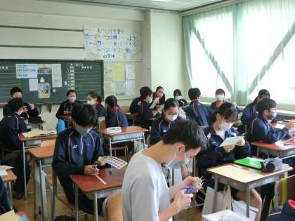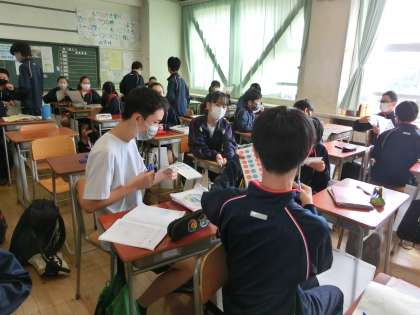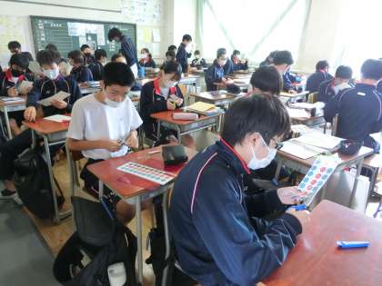 午前中授業、参観しました。2年生理科、授業で使う教材をつくっていました。