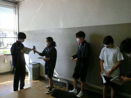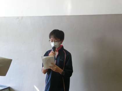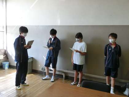 生徒会朝礼〜後期専門委員会より〜5 10月4日(月) 公開日 2021/10/04 更新日 2021/10/04 校長室より 図書委員長、放送委員長、給食委員長、最後は、本部役員でしめてもらいました。ご苦労様でした。はじめての朝礼、しっかりと挨拶ができていました。さすが委員長です。これからよろしくお願いします。 いいね(0)