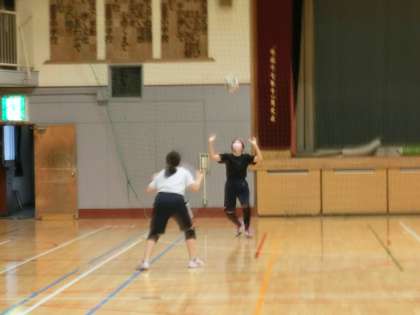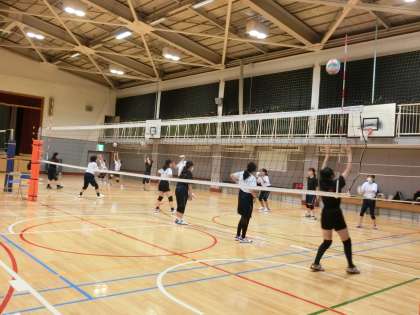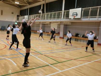 体育館では、バレーボール部が活動しています。昨日の新人戦をばねに頑張りましょう。