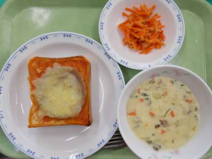 10月5日の給食 公開日 2021/10/05 更新日 2021/10/05 給食 今日は2年生が職場インタビューのため、1・3年生とI組の給食です。クラムチャウダーにはあさりとホタテフレークが入っています。 10月5日の献立 ・ハムチーズトースト ・クラムチャウダー ・人参サラダ 食材産地〔生鮮食品〕 人参:北海道 玉ねぎ:北海道 じゃがいも:北海道 かぶ:青森 あさり(冷凍):熊本 ホタテ水煮:青森 ハム・ベーコン:大多摩ハム いいね(0)