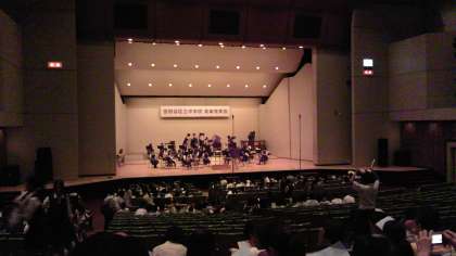 今日は区立中学校の吹奏楽部の発表会です。本校はオデッセイ・バンドのための序曲とラデツキー行進曲の2曲です。写真は演奏前の準備中のところです。ラデツキー行進曲の演奏では顧問の合図で観客から手拍子をいただき、段々観客の皆さんが手拍子をするタイミングを心得て、とても楽しい空間が生まれました。