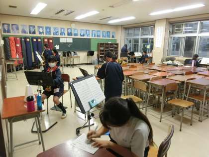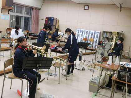 吹奏楽部も頑張っています。