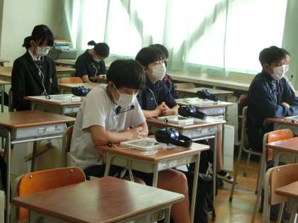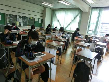 10月土曜授業日3 10月9日(土) 公開日 2021/10/09 更新日 2021/10/09 校長室より スピーキングテストがはじまりました。専用のタブレットで、イヤホンマイクを使って行います。 いいね(0)
