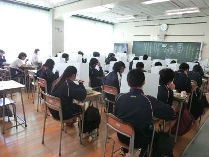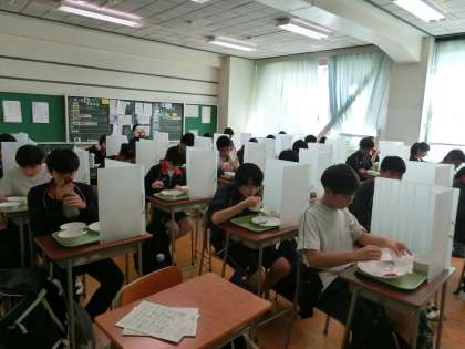 給食「黙食」中です。