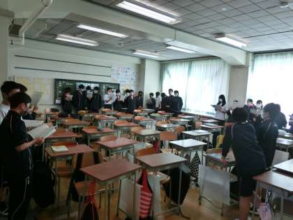昼休みは、合唱コンクールの練習です。