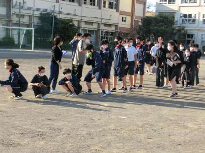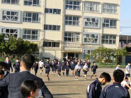 慌てず、騒がず、落ち着いて、素早く校庭に避難しました。
