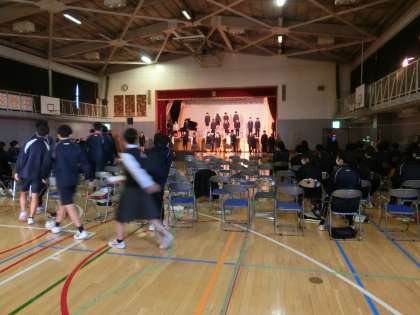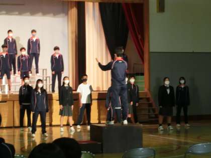 合唱コンクール学年練習3年2 10月18日(月) 公開日 2021/10/18 更新日 2021/10/18 校長室より 合唱を聞くことができませんでしたが、どうでしたか。2週間前の自分たちの合唱を聞いて、さらにパワーアップを期待しています。 いいね(0)