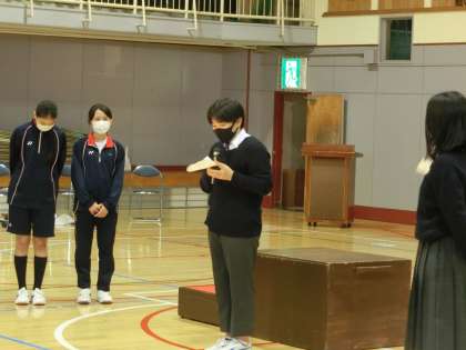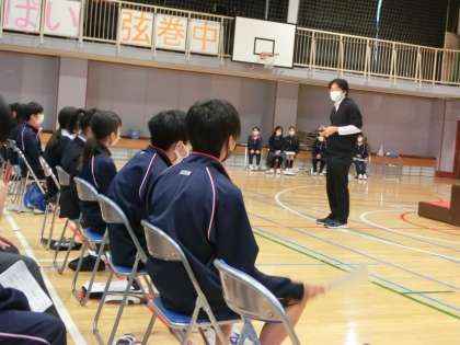 合唱コンクール学年練習2年1 10月18日(月) 公開日 2021/10/18 更新日 2021/10/18 校長室より 2年生の学年練習は、5・6時間目でした。実行委員があいさつをしてはじまりました。2年生にとっては、中学校生活はじめての合唱コンクールです。昨年度のボディパーカッションの時も、発表する人はもちろんのこと見る人も舞台発表の一部です。観る人がきちんとしてこそ、素晴らしい発表になります。合唱コンクールも一緒です。 いいね(0)