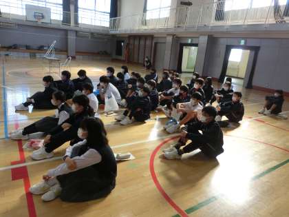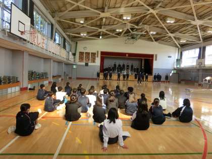 1年生が体育館練習の3年生を見に来ました。
