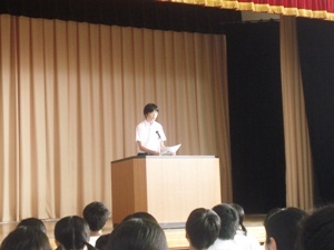 9月14日(水)、第5回生徒会朝会がありました。各委員長が前期の活動を振り返り、今後に向けての報告をしました。後期からは2年生が中心となって、生徒会活動等を盛り上げていってほしいと思います。