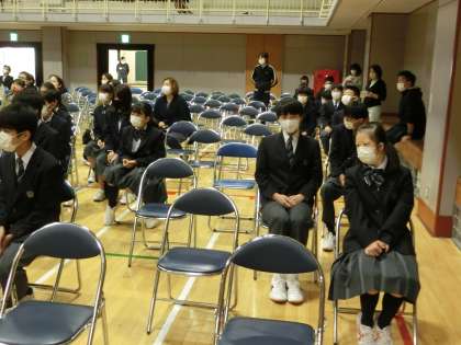 合唱コンクールリハーサル1 10月25日(月) 公開日 2021/10/25 更新日 2021/10/25 校長室より 今週土曜日に控えている合唱コンクールに向けて、リハーサルを行いました。 1・2時間目は、1年生とI組リハーサル。体育館に集合して、実行委員会のあいさつとともに、スタートです。 保護者の皆さんにも見ていただきます。 いいね(0)