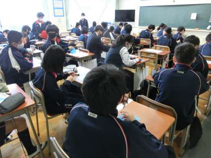 1時間目の道徳の時間は、各クラス合唱コンクールに向けての学習です。練習をしたり、目標を考えたり取り組んでいます。
