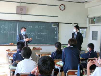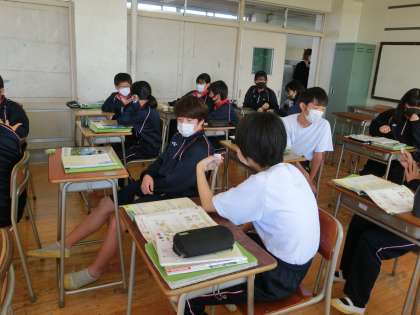 1年生少人数英語のクラス。ALTの先生の授業。ゲームで会話を楽しんでいました。