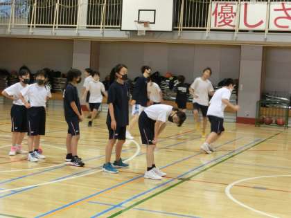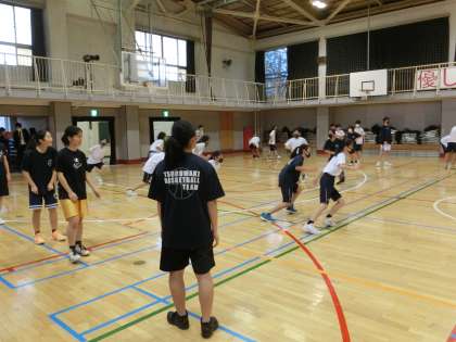 今日も部活動です。体育館では、バスケットボール部が活動しています。この後、吹奏楽部と一緒に椅子並べをしてくれる予定です。よろしくお願いします。
