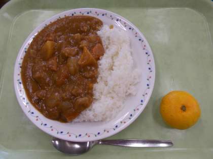 土曜日の学校行事給食なので生徒が好きなカレーです。また、飲み物も牛乳ではなくぶどうジュースでした。