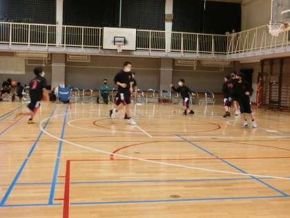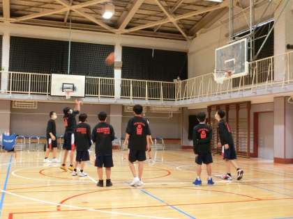 男子バスケットボール新人戦2回戦、対戦相手は緑丘中学校。試合直前の練習。