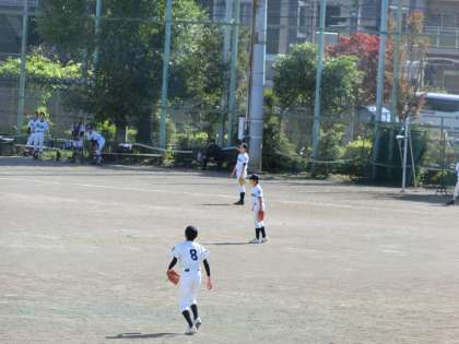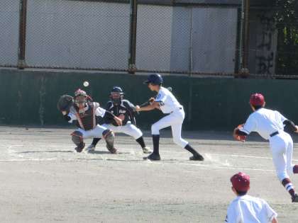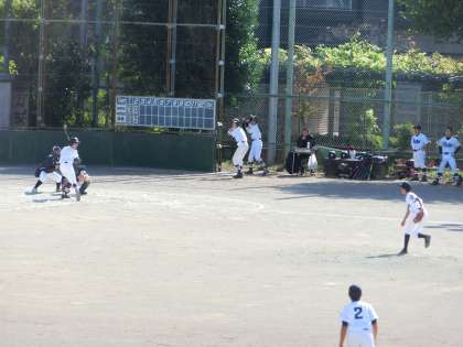 午前中校庭では、野球部が練習試合中。