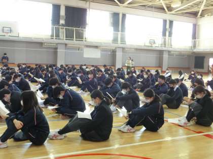 弦中生活1 11月4日(木) 公開日 2021/11/04 更新日 2021/11/04 校長室より 1時間目3年生は体育館で学年集会を行いました。熊谷先生からの進路の話を真剣に聞いている3年生でした。学発が終わっていよいよ受検モードに切り替えです。 いいね(0)