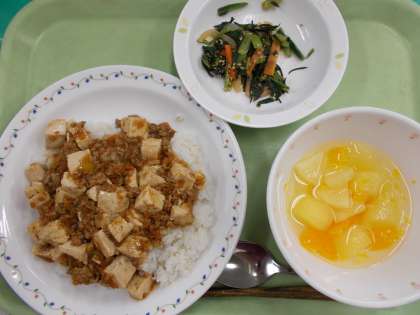麻婆豆腐丼は八丁味噌を入れているので少し濃い目の色になっています。