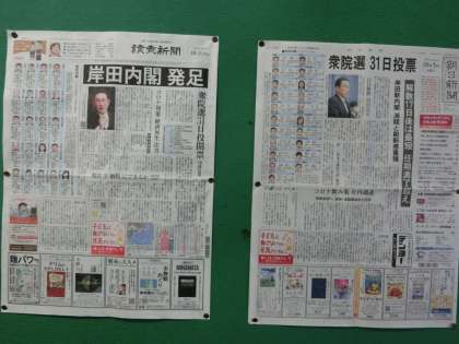 図書室の前の新聞コーナーでは、パンダの記事から、「新聞の記事を比べよう」のテーマに変わっていました。地方紙と全国紙、同じ記事でも写真や内容が大きく違います。比べてみましょう。