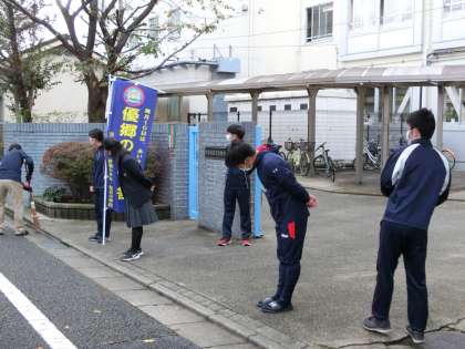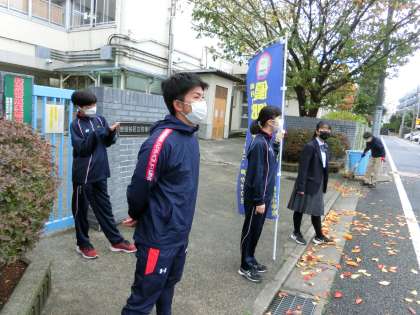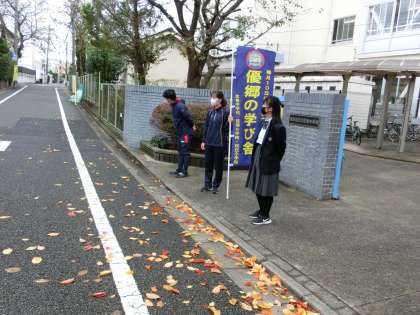 今日は月に1度の「あさいつ・声かけの日」です。生活委員の人たちが門に立って、元気なあいさつをしてくれています。気持ちの良い秋晴れの中、あいさつはいいものですね。
