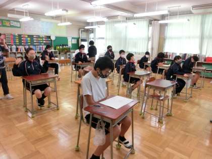 走った後は、I組もテストに取り組んでいます。