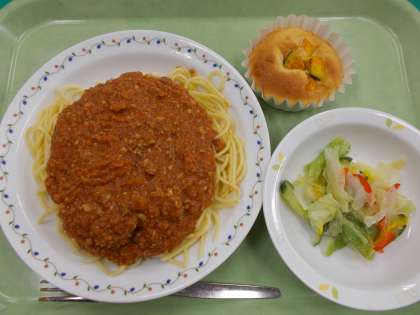 かぼちゃケーキは角切りして蒸したかぼちゃをケーキ生地の上にのせて焼いています。