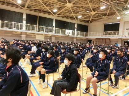 防災講演会8 12月11日(土) 公開日 2021/12/13 更新日 2021/12/13 校長室より 最後にTSAの代表生徒からお礼の言葉を伝えました。講演会・防災意識に関するアンケートでは、「講演会を聞いて防災意識が高まった」「避難所の生活について知れて良かった」「もうしもの時に日頃から備えておくことが大切であること」など、一人一人がしっかりと学ぶことができたと思います。清水先生ありがとうございます。 いいね(0)