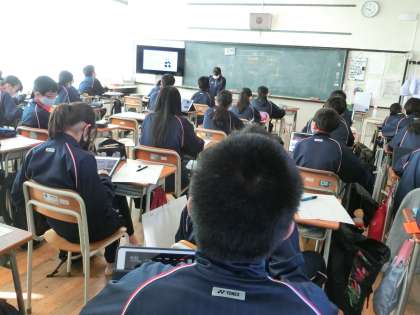 今日の授業5 12月13日(月) 公開日 2021/12/13 更新日 2021/12/13 校長室より 将来就きたい職業に出会うためにも、今知識を深めることは大切です。人の発表にもしっかりと耳を傾け、コミュニケーションスキルを高めてください。 いいね(0)