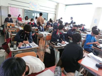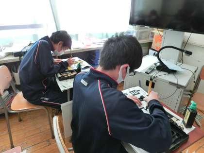 国語で書初め練習をしています。姿勢がいいと字も良くなります。